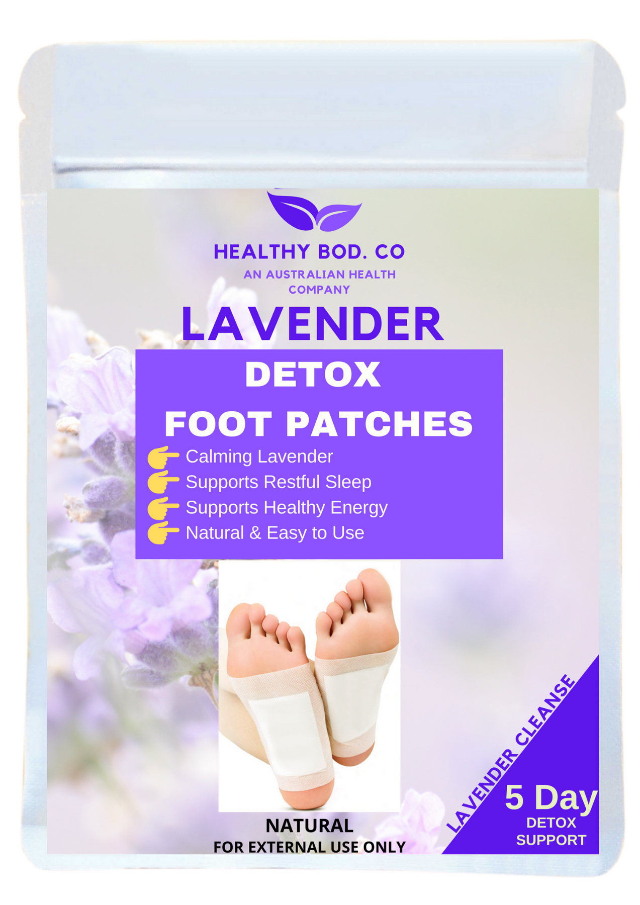 The Healthy Bod Co 5 Day Lavender Detox Foot Patches offer a simple and discreet way to help your body and mind stay alert and toxin-free. The patches boast an all-natural formula, containing bamboo vinegar extract, wormwood, tourmaline and just the right amount of vitamin C. Our Lavender detox patches also contain natural Lavender extract if you are looking for better sleep, and just that little bit more calm and relaxation of the body and mind.