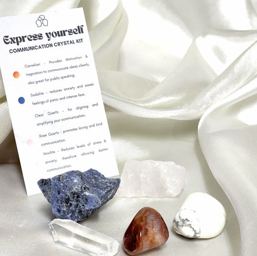 This Express Yourself - Communication Crystal Kit includes crystals that will assist with communication and opening up the throat chakra. This kit will be perfect for someone who is struggling to communicate their thoughts, emotions, and inner world.