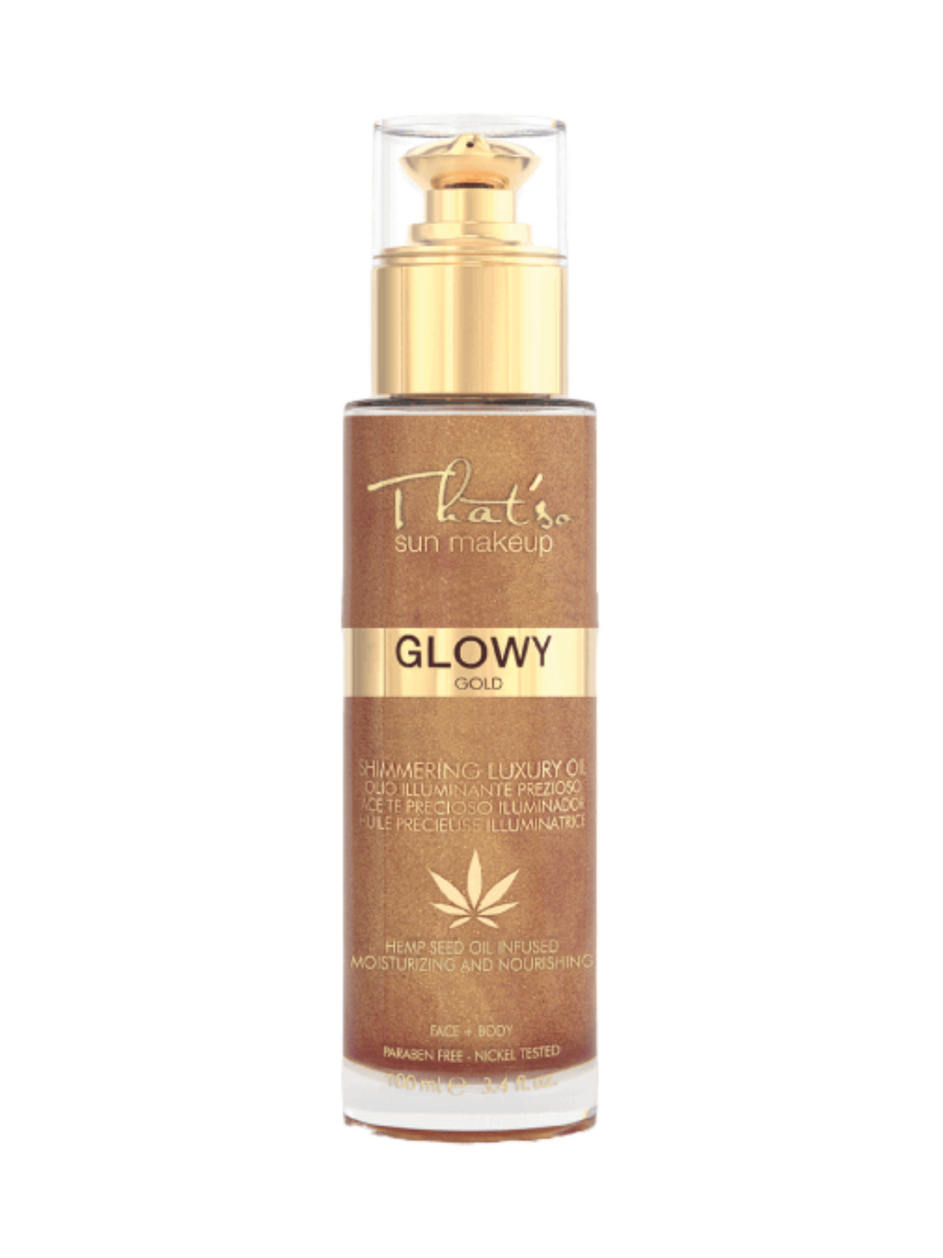 Moisturizing light and luminous oil which immediately gives a shimmering complexion leaving the skin dry and not greasy. GLOWY GOLD is enriched with Hemp Oil, an ingredient that nourishes and gives softness to the skin being rich in Omega 3 and Omega 6 antioxidants, powerful natural anti-aging agents. Use GLOWY GOLD all year round, during both summer and winter time, to give radiance and luminosity to face, body and to instantly illuminate the hair.