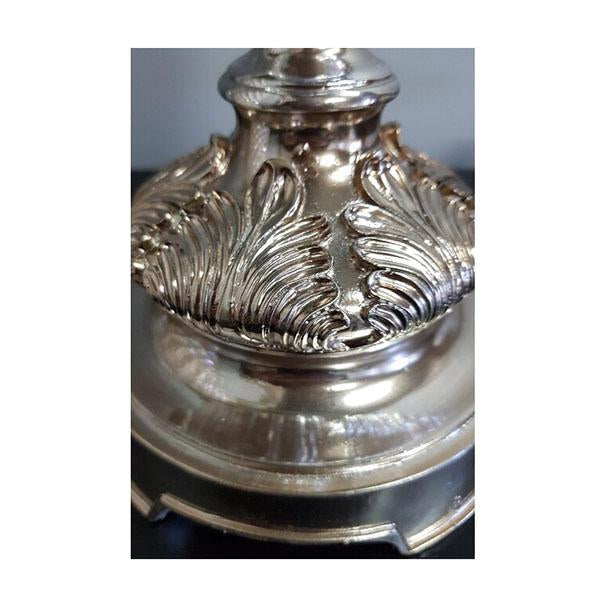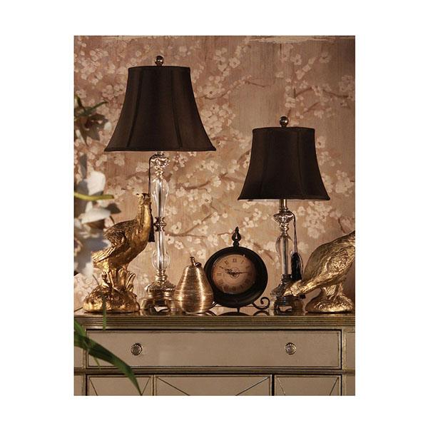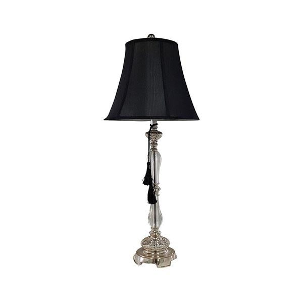 One of our best selling table lamps the Felicienne Champagne Table Lamp Base is made of Polyresin & Perspex. Comes with a black medium bell Shade with an American fitting (harp & finial provided) Black Tassel is attached to base to add to the beauty of this lamp. It needs a bayonet fitting bulb up to 60 watts. The complete lamp height (base & shade) is 84cmh. It has a black cord & cord-line switch.