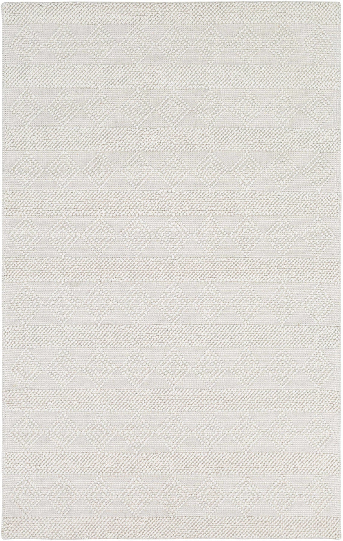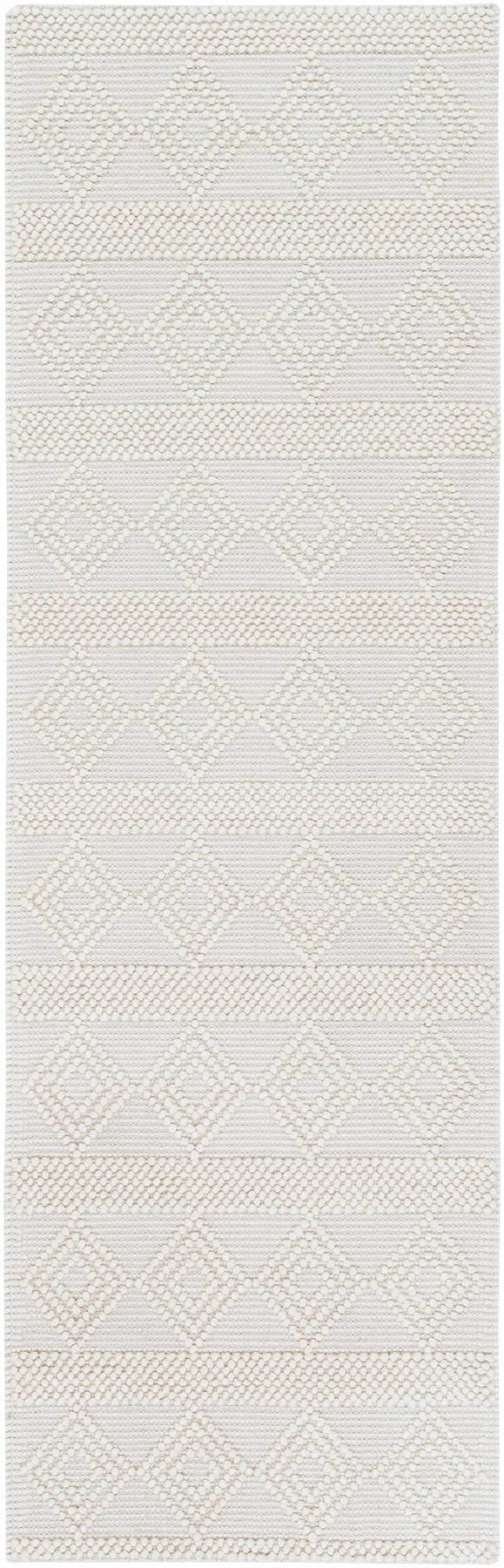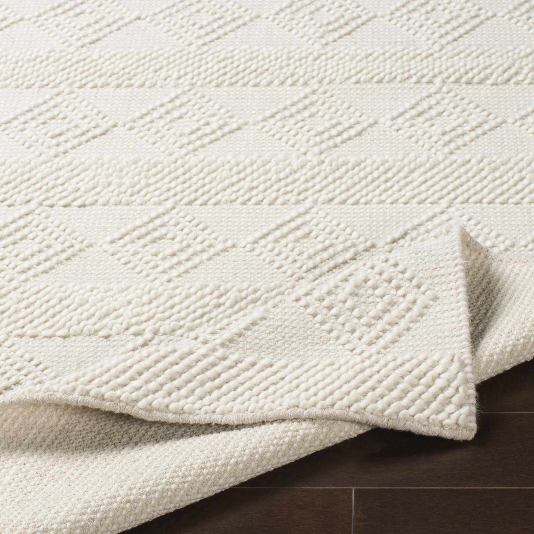 About: The Bolinger Area Rug is a handwoven masterpiece crafted from 100% wool, featuring a timeless diamond pattern in an elegant ivory tone. Durable and solid, this rug is an excellent addition to farmhouse and Scandinavian-style homes, bringing warmth and texture to your space. Its premium wool construction ensures longevity and comfort, making it a perfect choice for high-traffic areas or cozy living spaces. Add a touch of refined simplicity and natural charm to your home with this stunning piece.