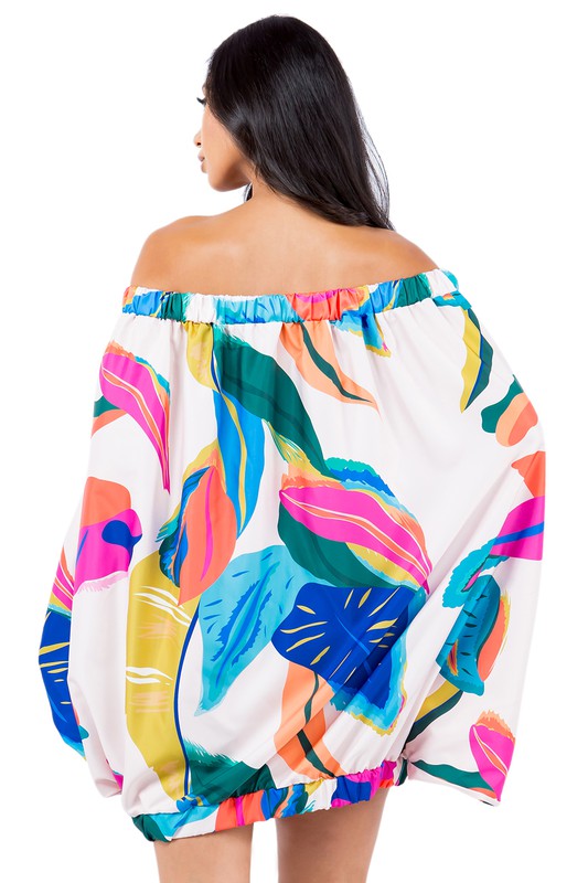 Sexy party dress, off shoulder, long bishop bell sleeves, mini dress